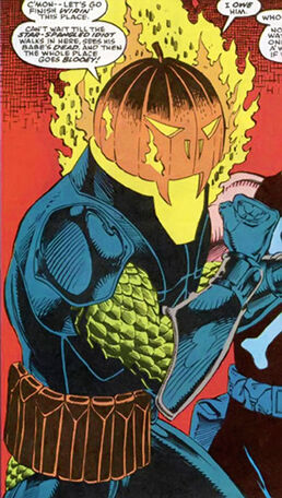 Jack O'Lantern is a name used by several supervillains wearing a costume with a burning pumpkin mask. The second Jack O'Lantern was part of the Red Skull's Skeleton Crew. He uses a flying glider and weaponry similar to the Green Goblin's.